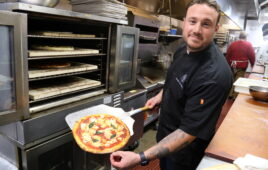 “Right now, I sell about 480 pizzas a day,” he says. “[In addition to our main menu], we have a display window where we feature specials. I encourage the staff come up with creative pizzas that they want to make.”